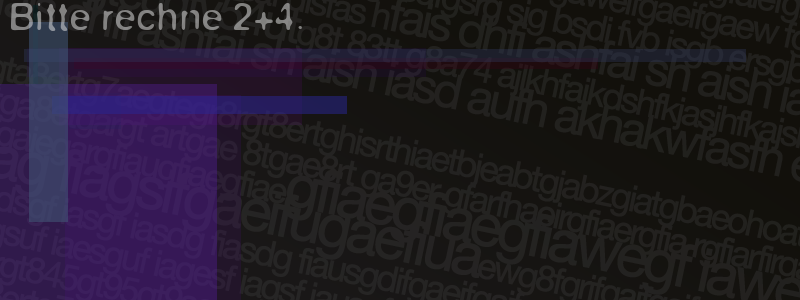 Die Visuelle Bestätigung hilft dabei automatische Spambots und Scripte von den Diensten dieses Forums abzuhalten. Derartige Scripte sind normalerweise nicht in der Lage den untenstehenden Code zu erkennen. Bitte geben Sie also in das untenstehende Feld die Buchstaben und Zahlen ein, die Sie in dem Bild erkennen können oder beantworten Sie die angezeigte Frage.