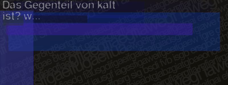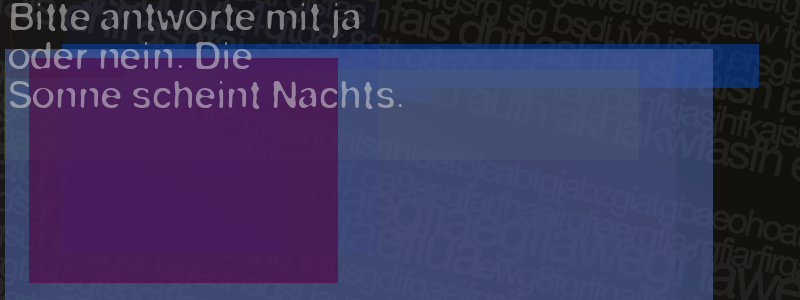 Die Visuelle Bestätigung hilft dabei automatische Spambots und Scripte von den Diensten dieses Forums abzuhalten. Derartige Scripte sind normalerweise nicht in der Lage den untenstehenden Code zu erkennen. Bitte geben Sie also in das untenstehende Feld die Buchstaben und Zahlen ein, die Sie in dem Bild erkennen können oder beantworten Sie die angezeigte Frage.