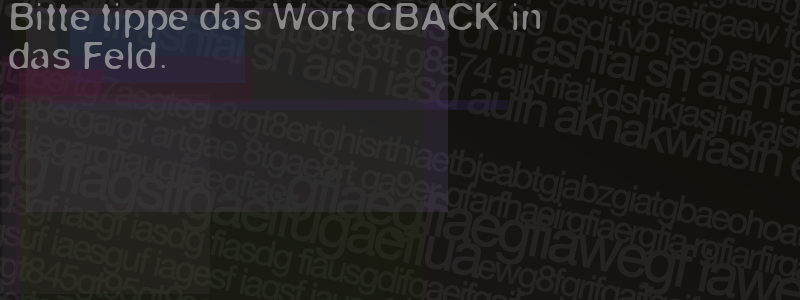 Die Visuelle Bestätigung hilft dabei automatische Spambots und Scripte von den Diensten dieses Forums abzuhalten. Derartige Scripte sind normalerweise nicht in der Lage den untenstehenden Code zu erkennen. Bitte geben Sie also in das untenstehende Feld die Buchstaben und Zahlen ein, die Sie in dem Bild erkennen können oder beantworten Sie die angezeigte Frage.