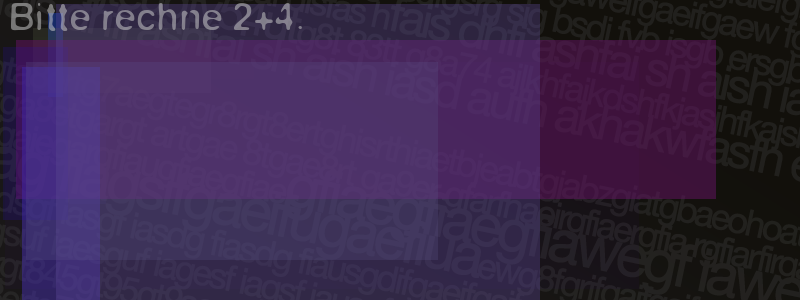 Die Visuelle Bestätigung hilft dabei automatische Spambots und Scripte von den Diensten dieses Forums abzuhalten. Derartige Scripte sind normalerweise nicht in der Lage den untenstehenden Code zu erkennen. Bitte geben Sie also in das untenstehende Feld die Buchstaben und Zahlen ein, die Sie in dem Bild erkennen können oder beantworten Sie die angezeigte Frage.