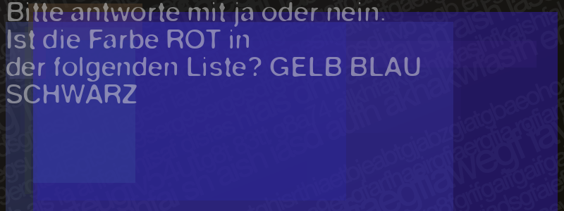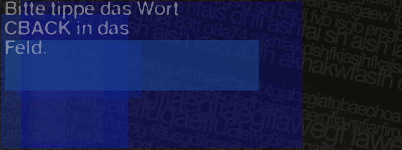 Die Visuelle Bestätigung hilft dabei automatische Spambots und Scripte von den Diensten dieses Forums abzuhalten. Derartige Scripte sind normalerweise nicht in der Lage den untenstehenden Code zu erkennen. Bitte geben Sie also in das untenstehende Feld die Buchstaben und Zahlen ein, die Sie in dem Bild erkennen können oder beantworten Sie die angezeigte Frage.