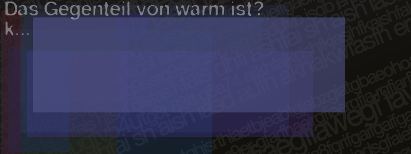 Die Visuelle Bestätigung hilft dabei automatische Spambots und Scripte von den Diensten dieses Forums abzuhalten. Derartige Scripte sind normalerweise nicht in der Lage den untenstehenden Code zu erkennen. Bitte geben Sie also in das untenstehende Feld die Buchstaben und Zahlen ein, die Sie in dem Bild erkennen können oder beantworten Sie die angezeigte Frage.