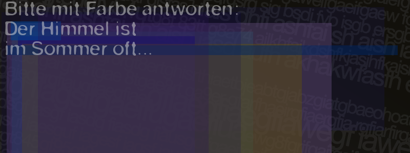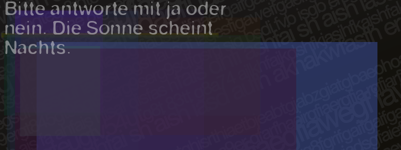 Die Visuelle Bestätigung hilft dabei automatische Spambots und Scripte von den Diensten dieses Forums abzuhalten. Derartige Scripte sind normalerweise nicht in der Lage den untenstehenden Code zu erkennen. Bitte geben Sie also in das untenstehende Feld die Buchstaben und Zahlen ein, die Sie in dem Bild erkennen können oder beantworten Sie die angezeigte Frage.