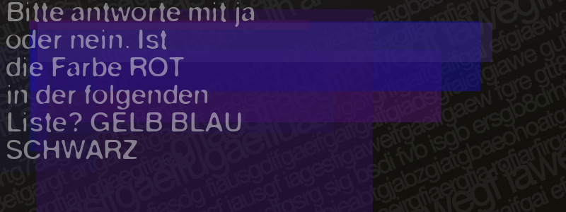 Die Visuelle Bestätigung hilft dabei automatische Spambots und Scripte von den Diensten dieses Forums abzuhalten. Derartige Scripte sind normalerweise nicht in der Lage den untenstehenden Code zu erkennen. Bitte geben Sie also in das untenstehende Feld die Buchstaben und Zahlen ein, die Sie in dem Bild erkennen können oder beantworten Sie die angezeigte Frage.
