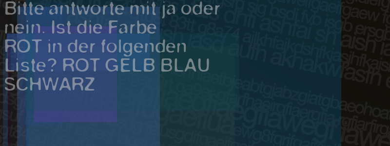 Die Visuelle Bestätigung hilft dabei automatische Spambots und Scripte von den Diensten dieses Forums abzuhalten. Derartige Scripte sind normalerweise nicht in der Lage den untenstehenden Code zu erkennen. Bitte geben Sie also in das untenstehende Feld die Buchstaben und Zahlen ein, die Sie in dem Bild erkennen können oder beantworten Sie die angezeigte Frage.