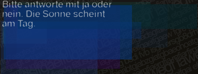 Die Visuelle Bestätigung hilft dabei automatische Spambots und Scripte von den Diensten dieses Forums abzuhalten. Derartige Scripte sind normalerweise nicht in der Lage den untenstehenden Code zu erkennen. Bitte geben Sie also in das untenstehende Feld die Buchstaben und Zahlen ein, die Sie in dem Bild erkennen können oder beantworten Sie die angezeigte Frage.