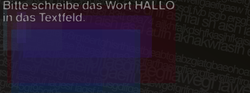 Die Visuelle Bestätigung hilft dabei automatische Spambots und Scripte von den Diensten dieses Forums abzuhalten. Derartige Scripte sind normalerweise nicht in der Lage den untenstehenden Code zu erkennen. Bitte geben Sie also in das untenstehende Feld die Buchstaben und Zahlen ein, die Sie in dem Bild erkennen können oder beantworten Sie die angezeigte Frage.