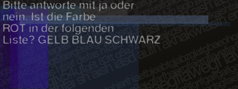 Die Visuelle Bestätigung hilft dabei automatische Spambots und Scripte von den Diensten dieses Forums abzuhalten. Derartige Scripte sind normalerweise nicht in der Lage den untenstehenden Code zu erkennen. Bitte geben Sie also in das untenstehende Feld die Buchstaben und Zahlen ein, die Sie in dem Bild erkennen können oder beantworten Sie die angezeigte Frage.
