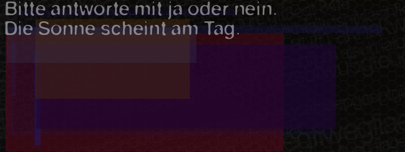 Die Visuelle Bestätigung hilft dabei automatische Spambots und Scripte von den Diensten dieses Forums abzuhalten. Derartige Scripte sind normalerweise nicht in der Lage den untenstehenden Code zu erkennen. Bitte geben Sie also in das untenstehende Feld die Buchstaben und Zahlen ein, die Sie in dem Bild erkennen können oder beantworten Sie die angezeigte Frage.