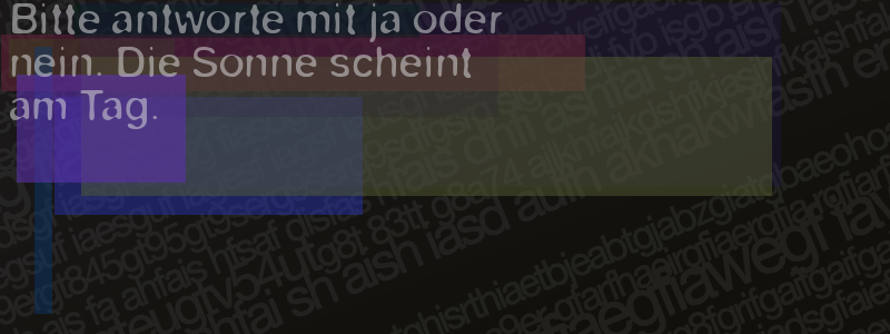 Die Visuelle Bestätigung hilft dabei automatische Spambots und Scripte von den Diensten dieses Forums abzuhalten. Derartige Scripte sind normalerweise nicht in der Lage den untenstehenden Code zu erkennen. Bitte geben Sie also in das untenstehende Feld die Buchstaben und Zahlen ein, die Sie in dem Bild erkennen können oder beantworten Sie die angezeigte Frage.