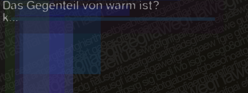 Die Visuelle Bestätigung hilft dabei automatische Spambots und Scripte von den Diensten dieses Forums abzuhalten. Derartige Scripte sind normalerweise nicht in der Lage den untenstehenden Code zu erkennen. Bitte geben Sie also in das untenstehende Feld die Buchstaben und Zahlen ein, die Sie in dem Bild erkennen können oder beantworten Sie die angezeigte Frage.