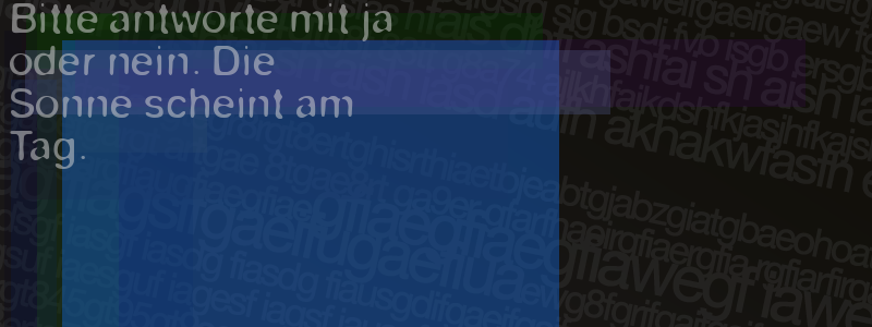 Die Visuelle Bestätigung hilft dabei automatische Spambots und Scripte von den Diensten dieses Forums abzuhalten. Derartige Scripte sind normalerweise nicht in der Lage den untenstehenden Code zu erkennen. Bitte geben Sie also in das untenstehende Feld die Buchstaben und Zahlen ein, die Sie in dem Bild erkennen können oder beantworten Sie die angezeigte Frage.