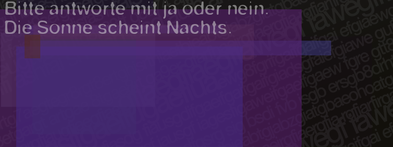 Die Visuelle Bestätigung hilft dabei automatische Spambots und Scripte von den Diensten dieses Forums abzuhalten. Derartige Scripte sind normalerweise nicht in der Lage den untenstehenden Code zu erkennen. Bitte geben Sie also in das untenstehende Feld die Buchstaben und Zahlen ein, die Sie in dem Bild erkennen können oder beantworten Sie die angezeigte Frage.