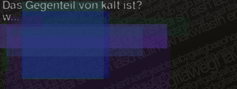 Die Visuelle Bestätigung hilft dabei automatische Spambots und Scripte von den Diensten dieses Forums abzuhalten. Derartige Scripte sind normalerweise nicht in der Lage den untenstehenden Code zu erkennen. Bitte geben Sie also in das untenstehende Feld die Buchstaben und Zahlen ein, die Sie in dem Bild erkennen können oder beantworten Sie die angezeigte Frage.