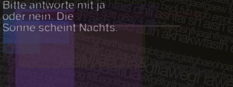 Die Visuelle Bestätigung hilft dabei automatische Spambots und Scripte von den Diensten dieses Forums abzuhalten. Derartige Scripte sind normalerweise nicht in der Lage den untenstehenden Code zu erkennen. Bitte geben Sie also in das untenstehende Feld die Buchstaben und Zahlen ein, die Sie in dem Bild erkennen können oder beantworten Sie die angezeigte Frage.