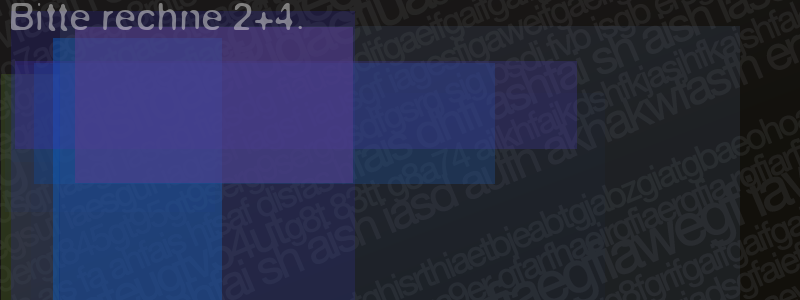 Die Visuelle Bestätigung hilft dabei automatische Spambots und Scripte von den Diensten dieses Forums abzuhalten. Derartige Scripte sind normalerweise nicht in der Lage den untenstehenden Code zu erkennen. Bitte geben Sie also in das untenstehende Feld die Buchstaben und Zahlen ein, die Sie in dem Bild erkennen können oder beantworten Sie die angezeigte Frage.