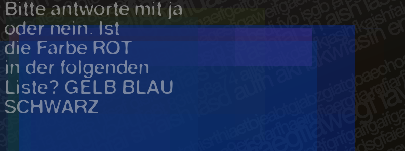 Die Visuelle Bestätigung hilft dabei automatische Spambots und Scripte von den Diensten dieses Forums abzuhalten. Derartige Scripte sind normalerweise nicht in der Lage den untenstehenden Code zu erkennen. Bitte geben Sie also in das untenstehende Feld die Buchstaben und Zahlen ein, die Sie in dem Bild erkennen können oder beantworten Sie die angezeigte Frage.