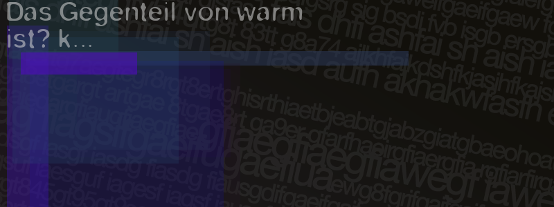 Die Visuelle Bestätigung hilft dabei automatische Spambots und Scripte von den Diensten dieses Forums abzuhalten. Derartige Scripte sind normalerweise nicht in der Lage den untenstehenden Code zu erkennen. Bitte geben Sie also in das untenstehende Feld die Buchstaben und Zahlen ein, die Sie in dem Bild erkennen können oder beantworten Sie die angezeigte Frage.
