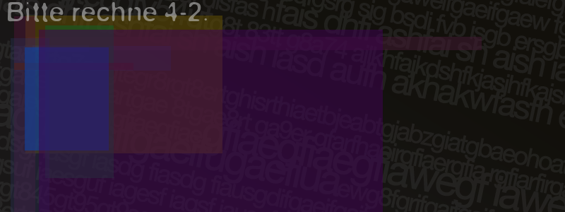 Die Visuelle Bestätigung hilft dabei automatische Spambots und Scripte von den Diensten dieses Forums abzuhalten. Derartige Scripte sind normalerweise nicht in der Lage den untenstehenden Code zu erkennen. Bitte geben Sie also in das untenstehende Feld die Buchstaben und Zahlen ein, die Sie in dem Bild erkennen können oder beantworten Sie die angezeigte Frage.