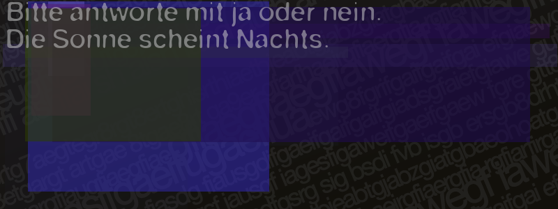 Die Visuelle Bestätigung hilft dabei automatische Spambots und Scripte von den Diensten dieses Forums abzuhalten. Derartige Scripte sind normalerweise nicht in der Lage den untenstehenden Code zu erkennen. Bitte geben Sie also in das untenstehende Feld die Buchstaben und Zahlen ein, die Sie in dem Bild erkennen können oder beantworten Sie die angezeigte Frage.