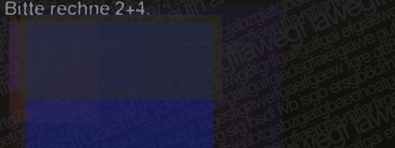 Die Visuelle Bestätigung hilft dabei automatische Spambots und Scripte von den Diensten dieses Forums abzuhalten. Derartige Scripte sind normalerweise nicht in der Lage den untenstehenden Code zu erkennen. Bitte geben Sie also in das untenstehende Feld die Buchstaben und Zahlen ein, die Sie in dem Bild erkennen können oder beantworten Sie die angezeigte Frage.