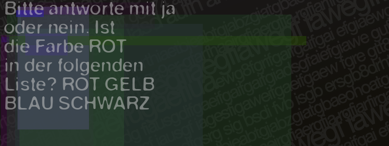 Die Visuelle Bestätigung hilft dabei automatische Spambots und Scripte von den Diensten dieses Forums abzuhalten. Derartige Scripte sind normalerweise nicht in der Lage den untenstehenden Code zu erkennen. Bitte geben Sie also in das untenstehende Feld die Buchstaben und Zahlen ein, die Sie in dem Bild erkennen können oder beantworten Sie die angezeigte Frage.
