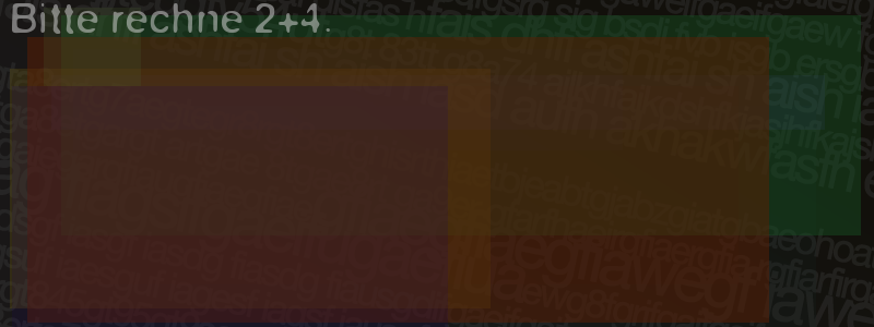 Die Visuelle Bestätigung hilft dabei automatische Spambots und Scripte von den Diensten dieses Forums abzuhalten. Derartige Scripte sind normalerweise nicht in der Lage den untenstehenden Code zu erkennen. Bitte geben Sie also in das untenstehende Feld die Buchstaben und Zahlen ein, die Sie in dem Bild erkennen können oder beantworten Sie die angezeigte Frage.