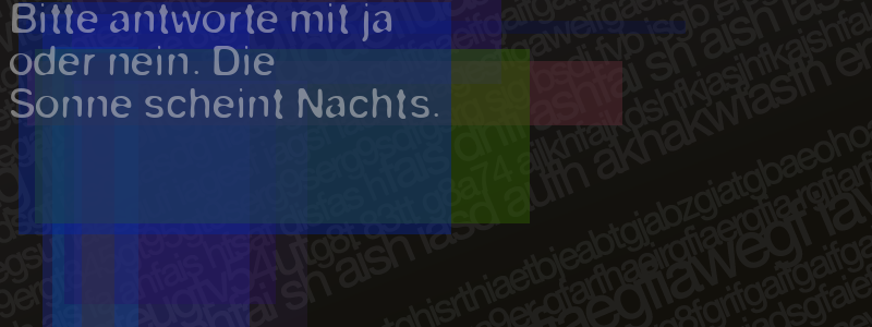 Die Visuelle Bestätigung hilft dabei automatische Spambots und Scripte von den Diensten dieses Forums abzuhalten. Derartige Scripte sind normalerweise nicht in der Lage den untenstehenden Code zu erkennen. Bitte geben Sie also in das untenstehende Feld die Buchstaben und Zahlen ein, die Sie in dem Bild erkennen können oder beantworten Sie die angezeigte Frage.