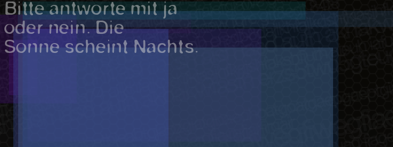 Die Visuelle Bestätigung hilft dabei automatische Spambots und Scripte von den Diensten dieses Forums abzuhalten. Derartige Scripte sind normalerweise nicht in der Lage den untenstehenden Code zu erkennen. Bitte geben Sie also in das untenstehende Feld die Buchstaben und Zahlen ein, die Sie in dem Bild erkennen können oder beantworten Sie die angezeigte Frage.