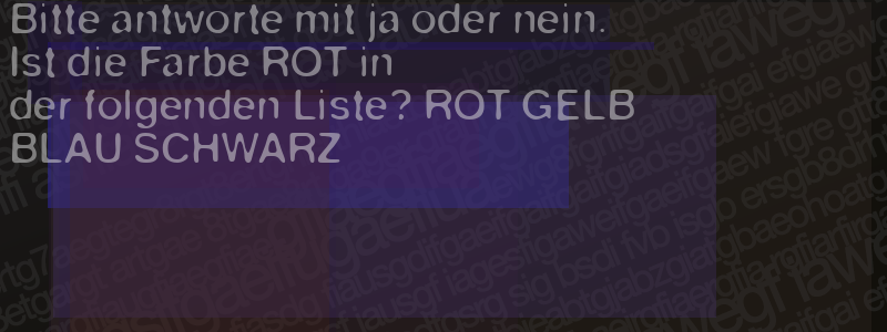 Die Visuelle Bestätigung hilft dabei automatische Spambots und Scripte von den Diensten dieses Forums abzuhalten. Derartige Scripte sind normalerweise nicht in der Lage den untenstehenden Code zu erkennen. Bitte geben Sie also in das untenstehende Feld die Buchstaben und Zahlen ein, die Sie in dem Bild erkennen können oder beantworten Sie die angezeigte Frage.
