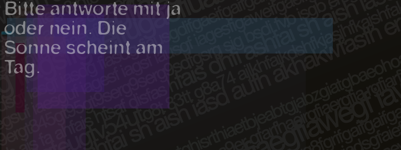 Die Visuelle Bestätigung hilft dabei automatische Spambots und Scripte von den Diensten dieses Forums abzuhalten. Derartige Scripte sind normalerweise nicht in der Lage den untenstehenden Code zu erkennen. Bitte geben Sie also in das untenstehende Feld die Buchstaben und Zahlen ein, die Sie in dem Bild erkennen können oder beantworten Sie die angezeigte Frage.