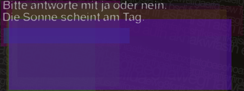 Die Visuelle Bestätigung hilft dabei automatische Spambots und Scripte von den Diensten dieses Forums abzuhalten. Derartige Scripte sind normalerweise nicht in der Lage den untenstehenden Code zu erkennen. Bitte geben Sie also in das untenstehende Feld die Buchstaben und Zahlen ein, die Sie in dem Bild erkennen können oder beantworten Sie die angezeigte Frage.