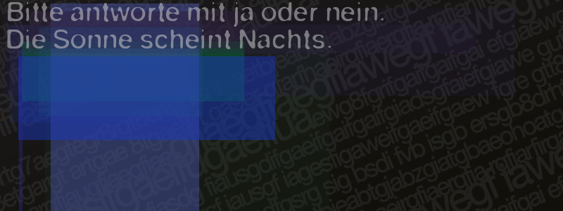 Die Visuelle Bestätigung hilft dabei automatische Spambots und Scripte von den Diensten dieses Forums abzuhalten. Derartige Scripte sind normalerweise nicht in der Lage den untenstehenden Code zu erkennen. Bitte geben Sie also in das untenstehende Feld die Buchstaben und Zahlen ein, die Sie in dem Bild erkennen können oder beantworten Sie die angezeigte Frage.