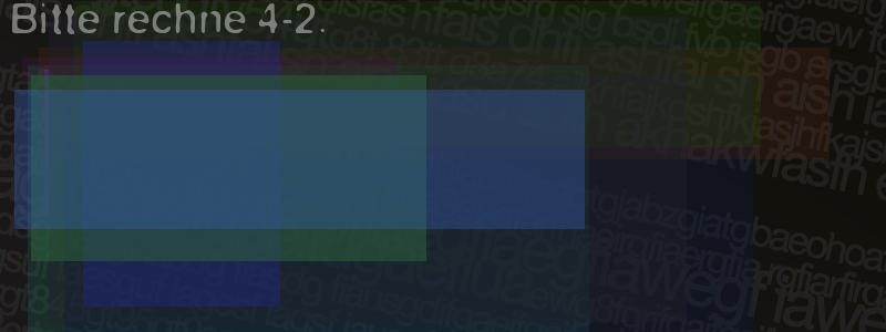 Die Visuelle Bestätigung hilft dabei automatische Spambots und Scripte von den Diensten dieses Forums abzuhalten. Derartige Scripte sind normalerweise nicht in der Lage den untenstehenden Code zu erkennen. Bitte geben Sie also in das untenstehende Feld die Buchstaben und Zahlen ein, die Sie in dem Bild erkennen können oder beantworten Sie die angezeigte Frage.