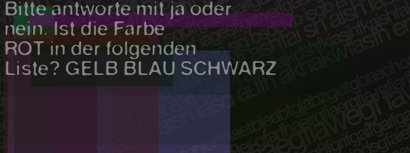 Die Visuelle Bestätigung hilft dabei automatische Spambots und Scripte von den Diensten dieses Forums abzuhalten. Derartige Scripte sind normalerweise nicht in der Lage den untenstehenden Code zu erkennen. Bitte geben Sie also in das untenstehende Feld die Buchstaben und Zahlen ein, die Sie in dem Bild erkennen können oder beantworten Sie die angezeigte Frage.