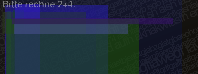 Die Visuelle Bestätigung hilft dabei automatische Spambots und Scripte von den Diensten dieses Forums abzuhalten. Derartige Scripte sind normalerweise nicht in der Lage den untenstehenden Code zu erkennen. Bitte geben Sie also in das untenstehende Feld die Buchstaben und Zahlen ein, die Sie in dem Bild erkennen können oder beantworten Sie die angezeigte Frage.
