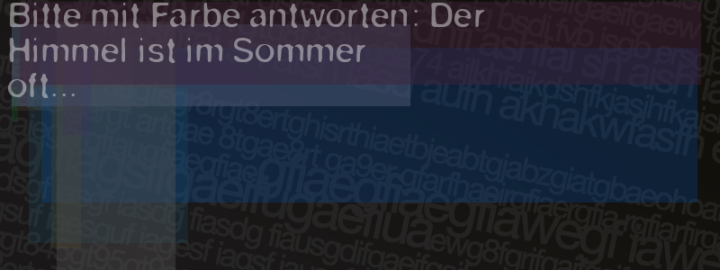 Die Visuelle Bestätigung hilft dabei automatische Spambots und Scripte von den Diensten dieses Forums abzuhalten. Derartige Scripte sind normalerweise nicht in der Lage den untenstehenden Code zu erkennen. Bitte geben Sie also in das untenstehende Feld die Buchstaben und Zahlen ein, die Sie in dem Bild erkennen können oder beantworten Sie die angezeigte Frage.