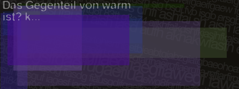 Die Visuelle Bestätigung hilft dabei automatische Spambots und Scripte von den Diensten dieses Forums abzuhalten. Derartige Scripte sind normalerweise nicht in der Lage den untenstehenden Code zu erkennen. Bitte geben Sie also in das untenstehende Feld die Buchstaben und Zahlen ein, die Sie in dem Bild erkennen können oder beantworten Sie die angezeigte Frage.