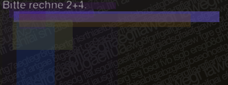Die Visuelle Bestätigung hilft dabei automatische Spambots und Scripte von den Diensten dieses Forums abzuhalten. Derartige Scripte sind normalerweise nicht in der Lage den untenstehenden Code zu erkennen. Bitte geben Sie also in das untenstehende Feld die Buchstaben und Zahlen ein, die Sie in dem Bild erkennen können oder beantworten Sie die angezeigte Frage.