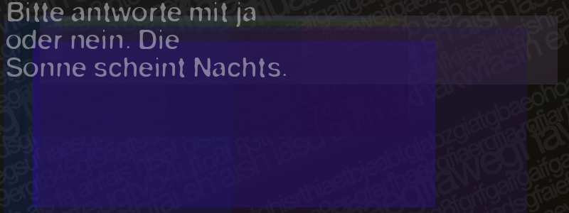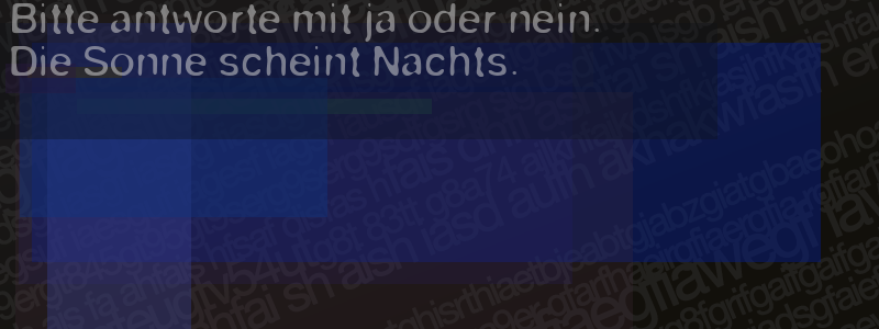 Die Visuelle Bestätigung hilft dabei automatische Spambots und Scripte von den Diensten dieses Forums abzuhalten. Derartige Scripte sind normalerweise nicht in der Lage den untenstehenden Code zu erkennen. Bitte geben Sie also in das untenstehende Feld die Buchstaben und Zahlen ein, die Sie in dem Bild erkennen können oder beantworten Sie die angezeigte Frage.