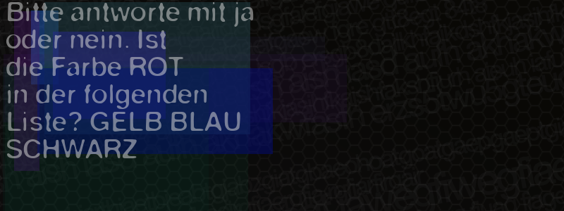 Die Visuelle Bestätigung hilft dabei automatische Spambots und Scripte von den Diensten dieses Forums abzuhalten. Derartige Scripte sind normalerweise nicht in der Lage den untenstehenden Code zu erkennen. Bitte geben Sie also in das untenstehende Feld die Buchstaben und Zahlen ein, die Sie in dem Bild erkennen können oder beantworten Sie die angezeigte Frage.