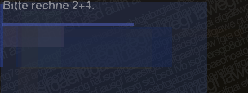 Die Visuelle Bestätigung hilft dabei automatische Spambots und Scripte von den Diensten dieses Forums abzuhalten. Derartige Scripte sind normalerweise nicht in der Lage den untenstehenden Code zu erkennen. Bitte geben Sie also in das untenstehende Feld die Buchstaben und Zahlen ein, die Sie in dem Bild erkennen können oder beantworten Sie die angezeigte Frage.