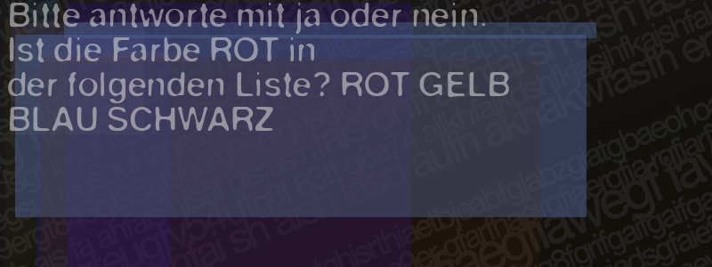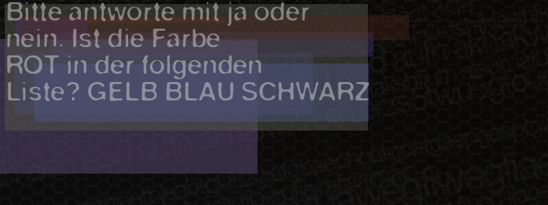 Die Visuelle Bestätigung hilft dabei automatische Spambots und Scripte von den Diensten dieses Forums abzuhalten. Derartige Scripte sind normalerweise nicht in der Lage den untenstehenden Code zu erkennen. Bitte geben Sie also in das untenstehende Feld die Buchstaben und Zahlen ein, die Sie in dem Bild erkennen können oder beantworten Sie die angezeigte Frage.