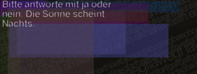 Die Visuelle Bestätigung hilft dabei automatische Spambots und Scripte von den Diensten dieses Forums abzuhalten. Derartige Scripte sind normalerweise nicht in der Lage den untenstehenden Code zu erkennen. Bitte geben Sie also in das untenstehende Feld die Buchstaben und Zahlen ein, die Sie in dem Bild erkennen können oder beantworten Sie die angezeigte Frage.
