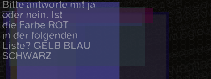 Die Visuelle Bestätigung hilft dabei automatische Spambots und Scripte von den Diensten dieses Forums abzuhalten. Derartige Scripte sind normalerweise nicht in der Lage den untenstehenden Code zu erkennen. Bitte geben Sie also in das untenstehende Feld die Buchstaben und Zahlen ein, die Sie in dem Bild erkennen können oder beantworten Sie die angezeigte Frage.