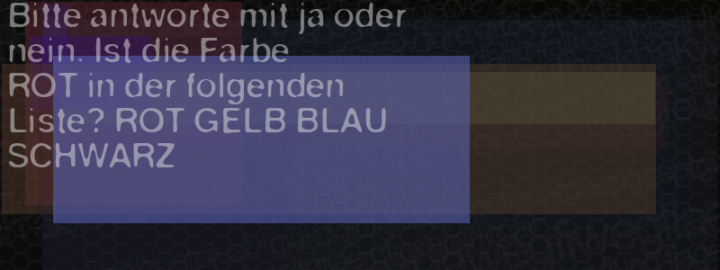 Die Visuelle Bestätigung hilft dabei automatische Spambots und Scripte von den Diensten dieses Forums abzuhalten. Derartige Scripte sind normalerweise nicht in der Lage den untenstehenden Code zu erkennen. Bitte geben Sie also in das untenstehende Feld die Buchstaben und Zahlen ein, die Sie in dem Bild erkennen können oder beantworten Sie die angezeigte Frage.