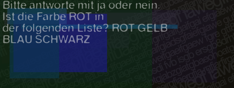 Die Visuelle Bestätigung hilft dabei automatische Spambots und Scripte von den Diensten dieses Forums abzuhalten. Derartige Scripte sind normalerweise nicht in der Lage den untenstehenden Code zu erkennen. Bitte geben Sie also in das untenstehende Feld die Buchstaben und Zahlen ein, die Sie in dem Bild erkennen können oder beantworten Sie die angezeigte Frage.