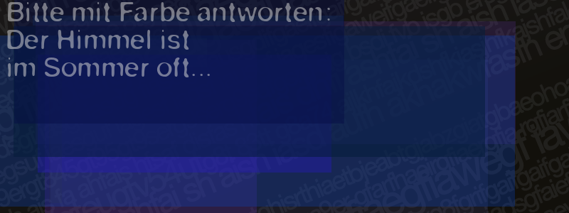 Die Visuelle Bestätigung hilft dabei automatische Spambots und Scripte von den Diensten dieses Forums abzuhalten. Derartige Scripte sind normalerweise nicht in der Lage den untenstehenden Code zu erkennen. Bitte geben Sie also in das untenstehende Feld die Buchstaben und Zahlen ein, die Sie in dem Bild erkennen können oder beantworten Sie die angezeigte Frage.