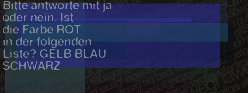 Die Visuelle Bestätigung hilft dabei automatische Spambots und Scripte von den Diensten dieses Forums abzuhalten. Derartige Scripte sind normalerweise nicht in der Lage den untenstehenden Code zu erkennen. Bitte geben Sie also in das untenstehende Feld die Buchstaben und Zahlen ein, die Sie in dem Bild erkennen können oder beantworten Sie die angezeigte Frage.