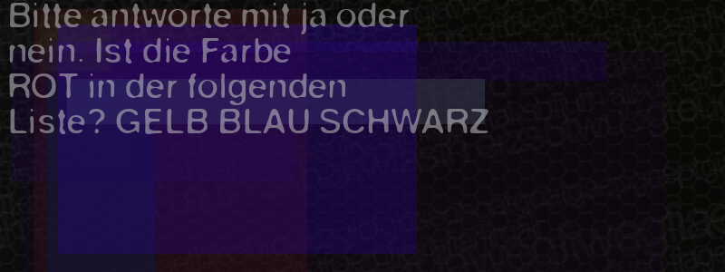 Die Visuelle Bestätigung hilft dabei automatische Spambots und Scripte von den Diensten dieses Forums abzuhalten. Derartige Scripte sind normalerweise nicht in der Lage den untenstehenden Code zu erkennen. Bitte geben Sie also in das untenstehende Feld die Buchstaben und Zahlen ein, die Sie in dem Bild erkennen können oder beantworten Sie die angezeigte Frage.